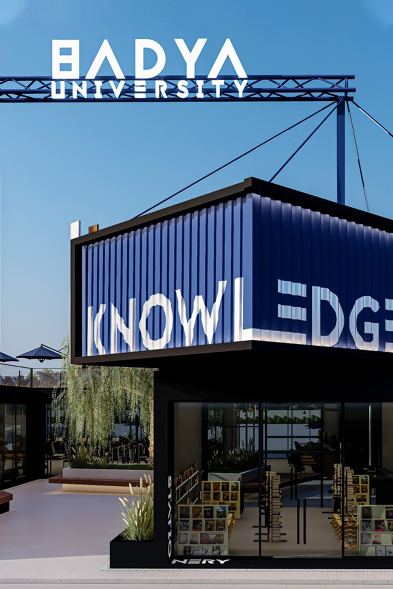 Badya University’s Student Activities Building offers health, learning, and socializing spaces for students with shops, restaurants, and a gym.